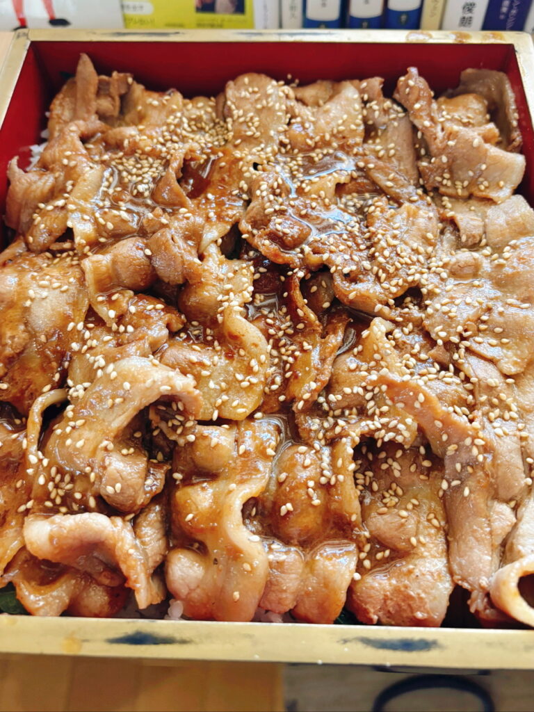 5段目→焼肉重、これは牛肉ではなく豚肉で!自家製の焼肉のタレで作りました。これが自分で言うのもなんですがうまいんです☺️
