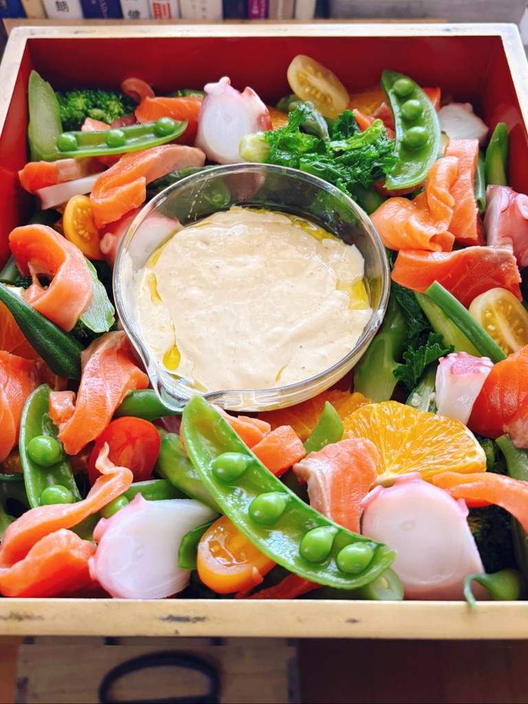 3段目→お野菜とフルーツのバーニャカウダ